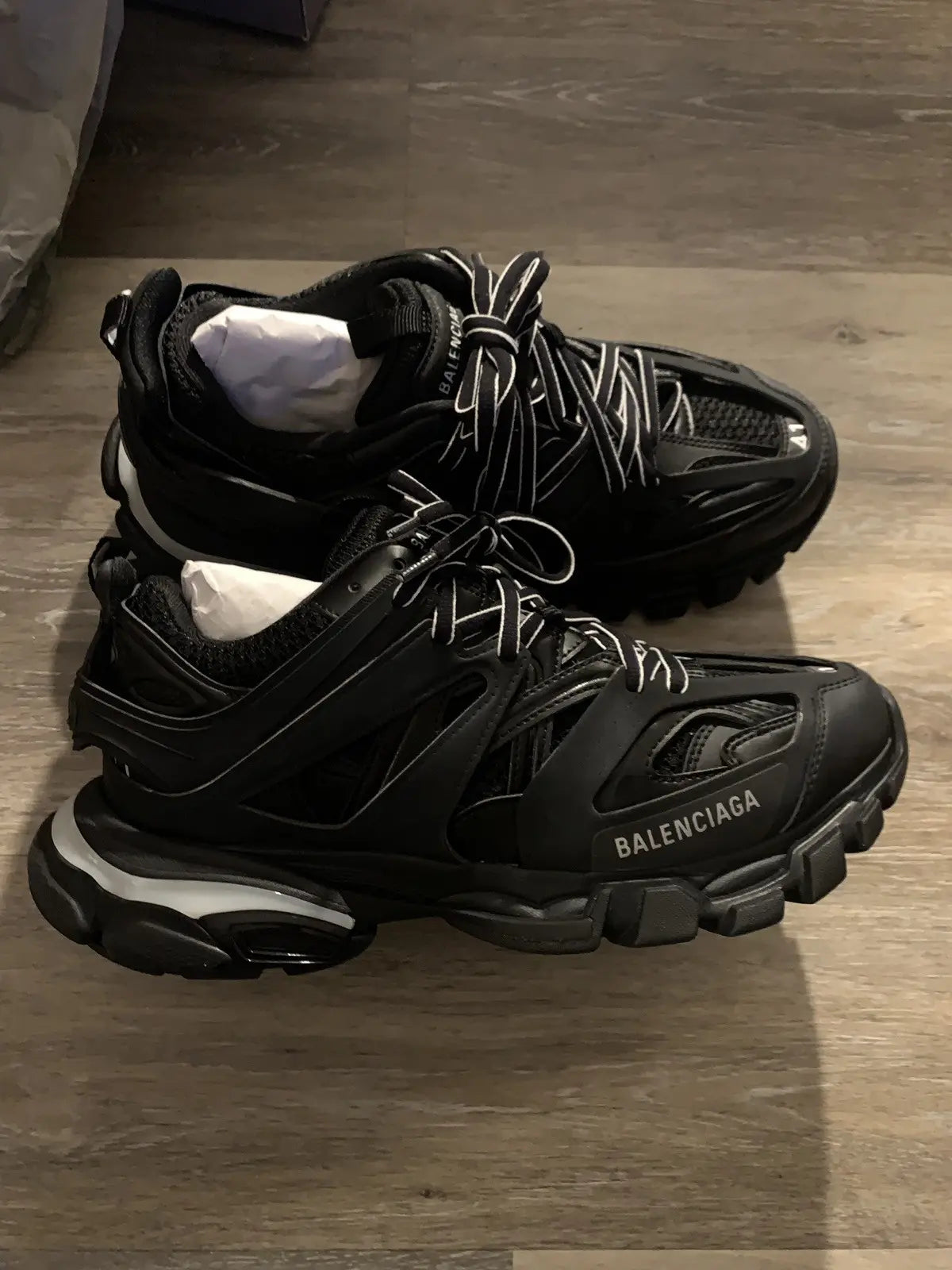 – Промаркиран с Balenciaga лого отпред, отстрани и на петата