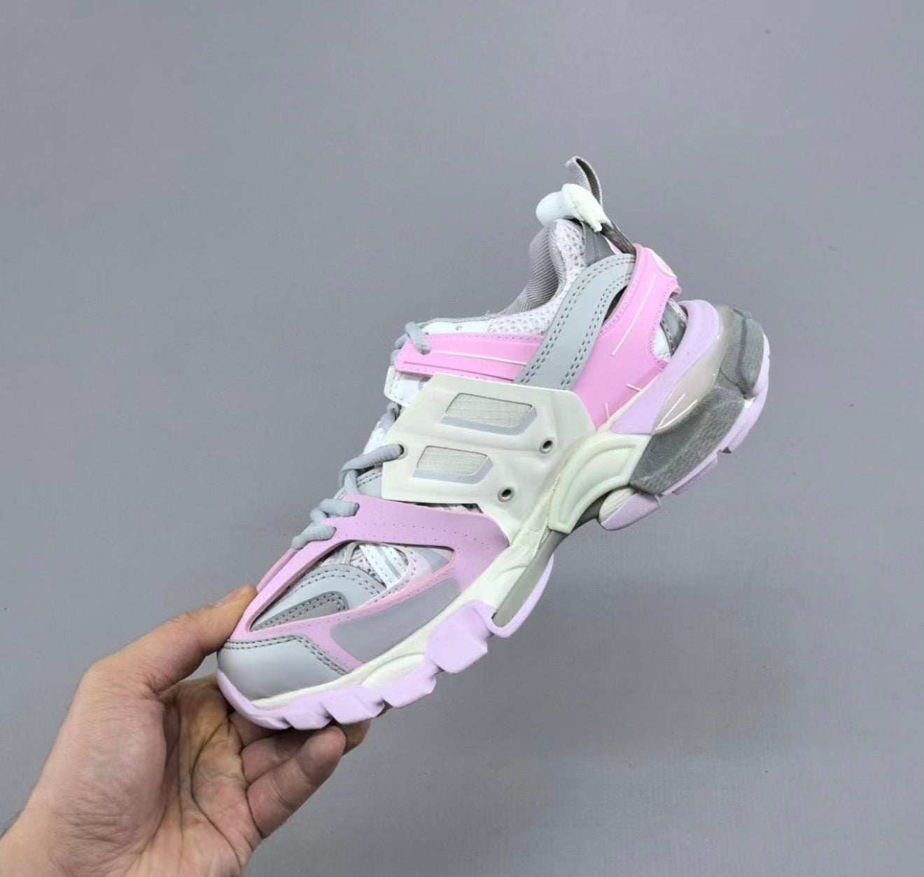 Balenciaga Track впечатлява с авангарден и многопластов дизайн, вдъхновен от техническите обувки за бягане и хайкинг. Обемната му визия и „разглобена“ структура създават усещане за движение и мощ, дори когато стоиш на място. Балансът между агресивни линии и модерна естетика го прави емблематичен модел в света на луксозната улична мода.